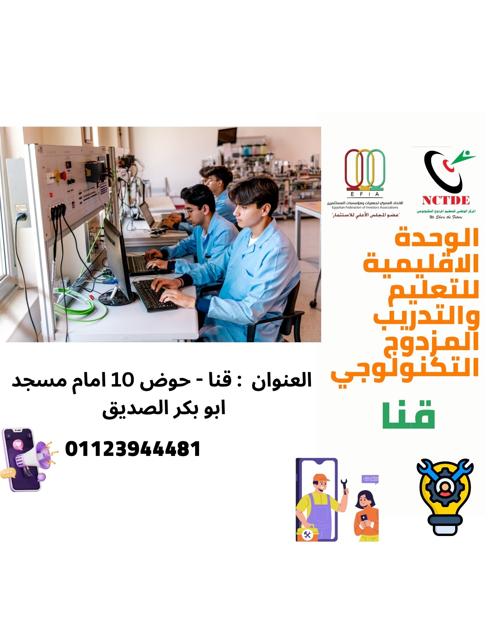 الوحدة الاقليمية للتعليم والتدريب المزدوج التكنولوجي ب قنا نشر بواسطه NCHRD Egypt الاقسام الوحدات الاقليميه Date يونيو 26, 2025 مساعد فني اداري– تبريد وتكييف– سيارات– نجارة وإصلاح Share: NCHRD Egypt Previous post الوحدة الاقليمية للتعليم والتدريب المزدوج التكنولوجي ب سوهاج يونيو 26, 2025 Next post الوحدة الاقليمية للتعليم والتدريب المزدوج التكنولوجي اسيوط 2 يونيو 26, 2025 You may also like الدليل الإرشادي للتعليم والتدريب المزدوج التكنولوجي يونيو 26, 2025 الوحدة الاقليمية للتعليم والتدريب المزدوج التكنولوجي شمال المنيا يونيو 26, 2025 الوحدة الاقليمية للتتعليم والتدريب والمزدوج التكنولوجي بالقاهرة الكبرى يونيو 26, 2025